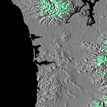 The Grayscale USA databases store 3 separate grayscale images in each of the 3 color channels. Channel 1 contains a Grayscale image in which the U.S. topography is represented by different shades of gray. The higher the area the lighter the color. Channel 2 contains a shaded relief image of the U.S. This image can be used to add shaded topography to your maps. Channel 3 contains a mask for separating water from land. The resolution of this file is 120 pixels per degree. The image extends from 126°W to 66°W and from 50°N to 24°N. The file size is 64 MB and it comes on an CD-ROM disk. An image cropping program is also included.