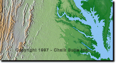 Detail view of the Chesapeake Bay and DC area from the above North American file. | ||